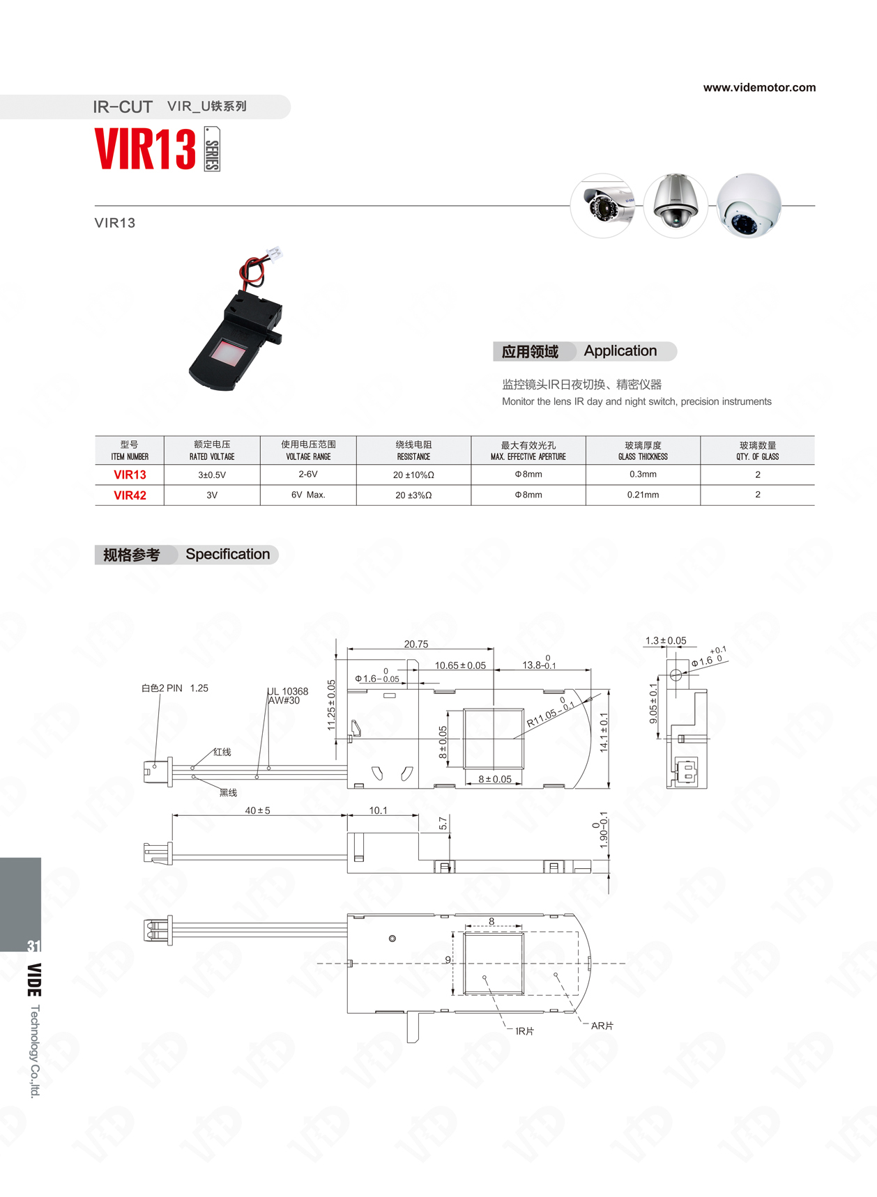 應用領域:監(jiān)控鏡頭IR日夜切換、精密儀器